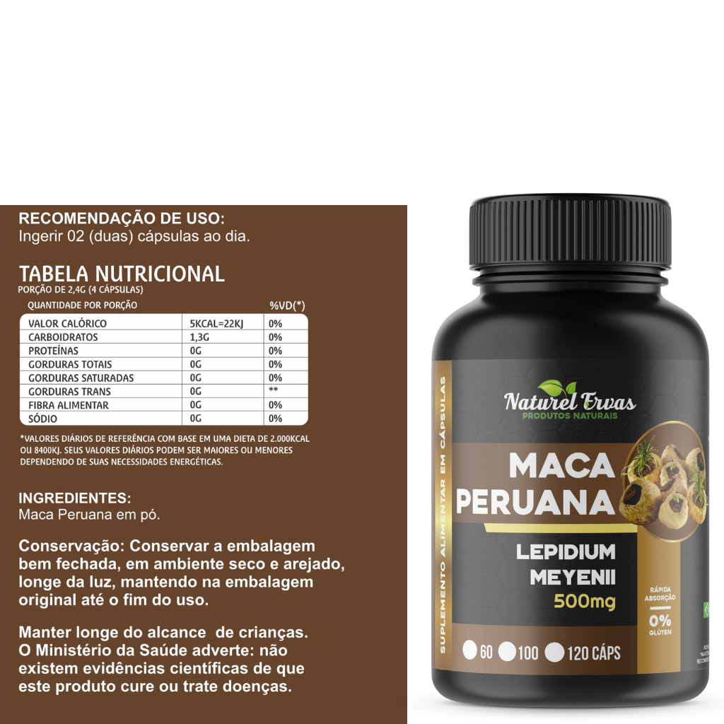 Maca Peruana 120 Capsulas- 500 mg - BLACK FRIDAY + GRÁTIS