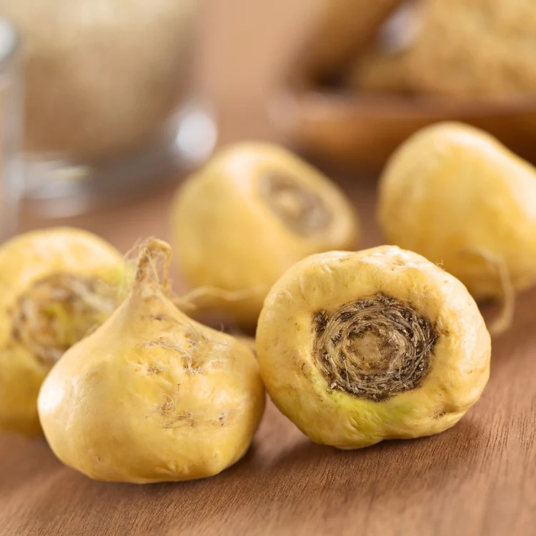 É uma raiz andina considerada um superalimento, rica em nutrientes que apoiam energia, vitalidade e equilíbrio hormonal.
